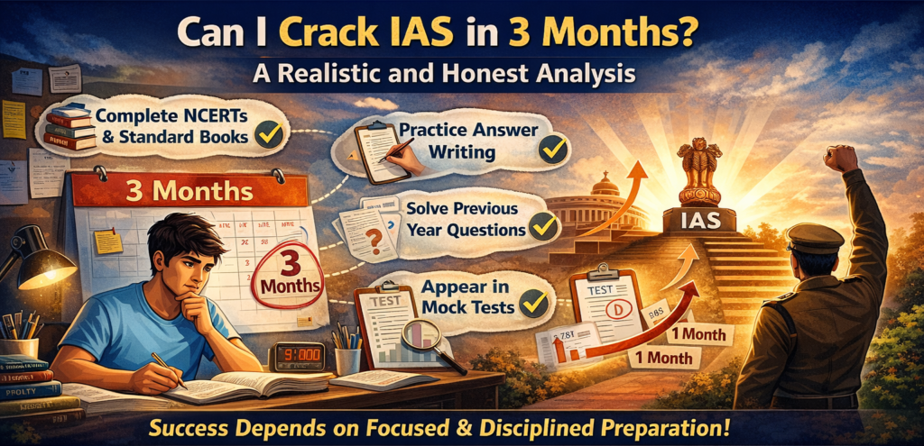 The question “Can I crack IAS in 3 months?” is commonly asked by aspirants, especially those who are either beginners or repeaters looking for a quick strategy.